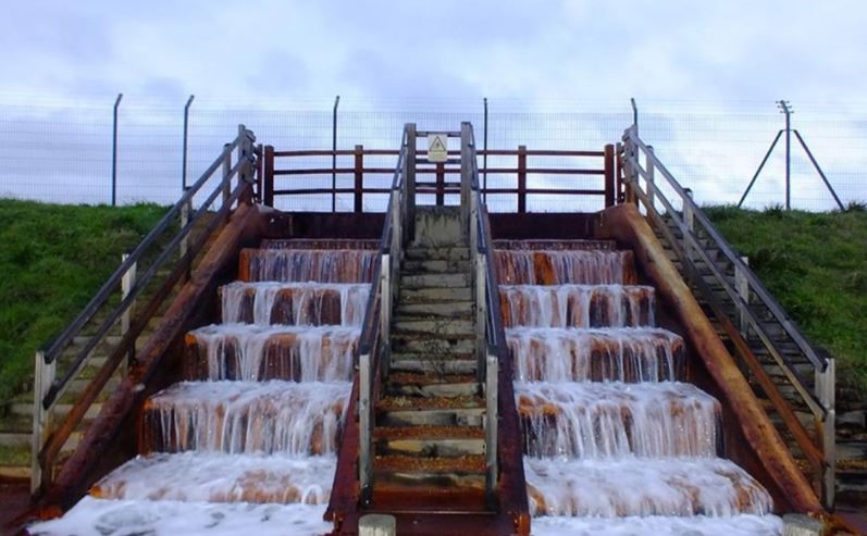 To treat mine water, it’s typically pumped to the top of cascade structure, flows down a series of steps, which when mixes with the air it encourages dissolved iron to become solid. The water then flows through a series of reed beds and lagoons, where the iron accumulates at the bottom, known as ochre.