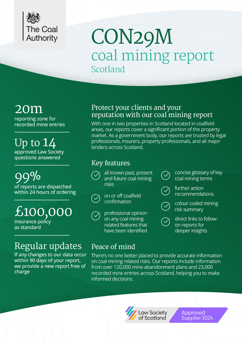 Comprehensive and trusted coverage: With 1 in 2 properties in Scotland located in coalfield areas, our reports cover a significant portion of Scotland’s property market.