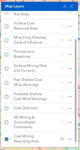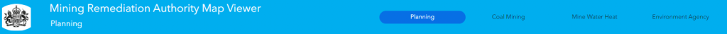 The Mining Remediation Authority Map Viewer is divided into four individual themes: Planning, Coal Mining, Mine Water Heat and Environment Agency.