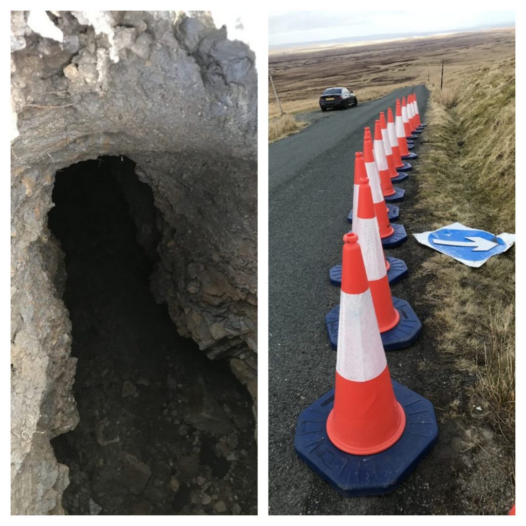 The collapse could have posed a significant hazard as the road is a popular route for keen cyclists. The hole will be monitored on a fortnightly basis and we are liaising with North Yorkshire County Council Highways department to ensure continued safety of the public. Further investigations will take place once government restrictions are lifted.