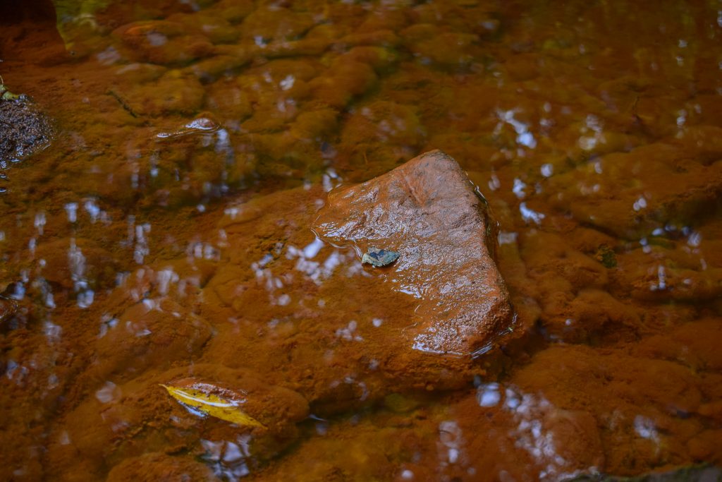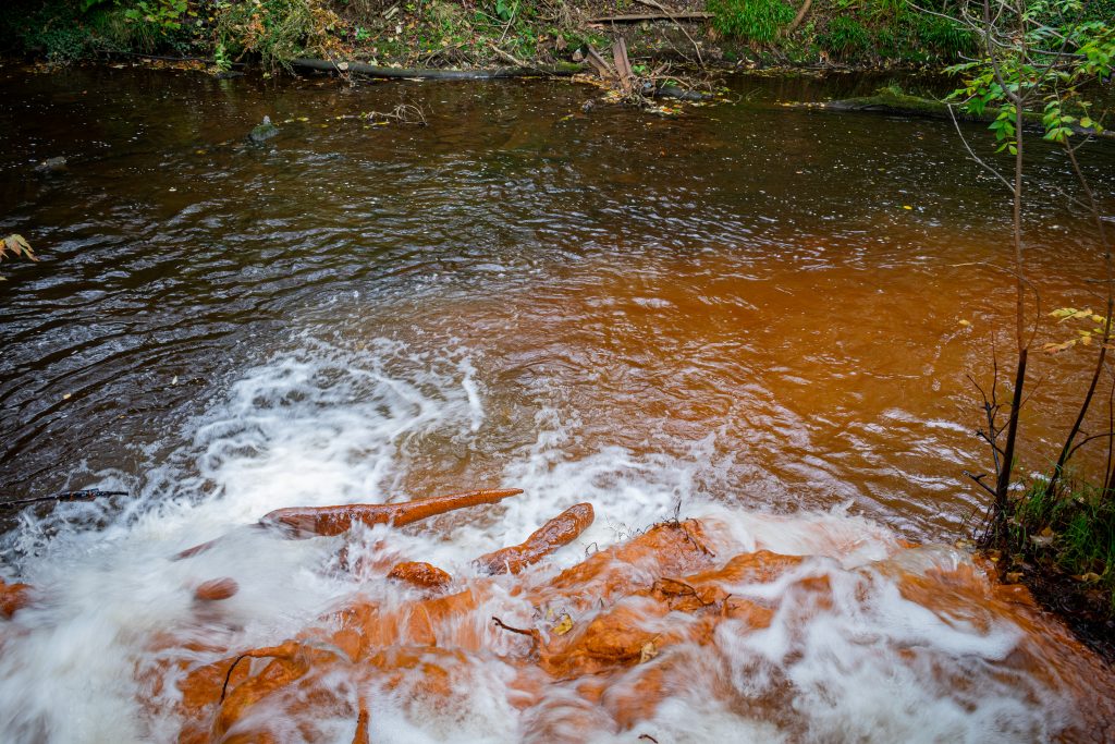 A clear split in colour is showcased above, showing the impact the mine water is having