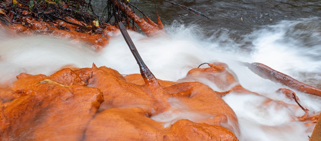 As the water has risen and progressed through the mine workings, it has accumulated minerals and traces of metals – notably iron and manganese – from interaction with the coal seams. These minerals and metals remain either suspended or dissolved in the mine water as the water progresses towards the surface. The adit is at a low point in the underground labyrinth and, as the mine water level has increased, it has become a natural escape for the mine water that flows through the interconnecting passages underground.