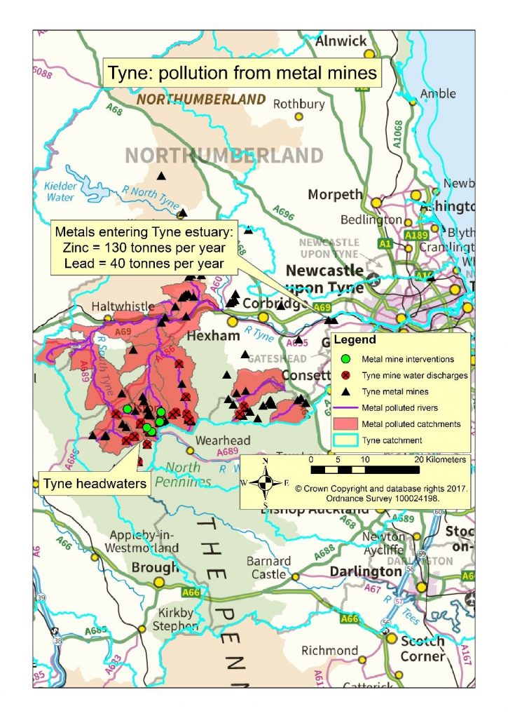 This pollution by cadmium, lead and zinc comes from several different sources and the effects on water and sediment quality, and aquatic life can be seen for 60km along the River South Tyne and in the Tyne Estuary.